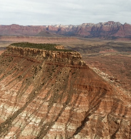 Our 15 mile Zion National Park helicopter flight allows you to take in beautiful scenery of the Virgin River Valley with amazing panoramic views of West Temple and the large Crater Hill Volcano located within the park!