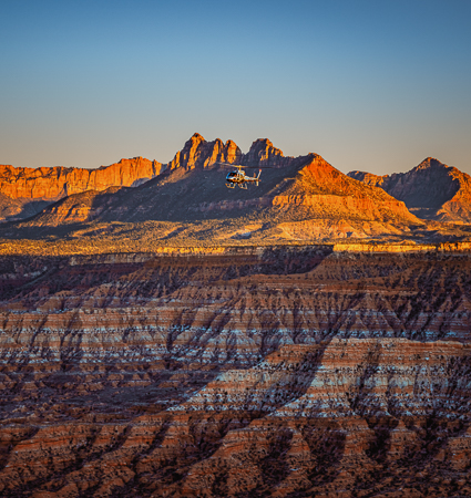 This once in a lifetime flight with spectacular views of West Zion, Kolob Canyons, & Smith Mesa is like no other, but the best part of this tour is yet to come with an aerial adventure over the breathtaking Canaan Mountain Wilderness Area where you will get a true helicopter experience when flying close to the amazing rock formations and right over 2,000’ sheer cliffs.