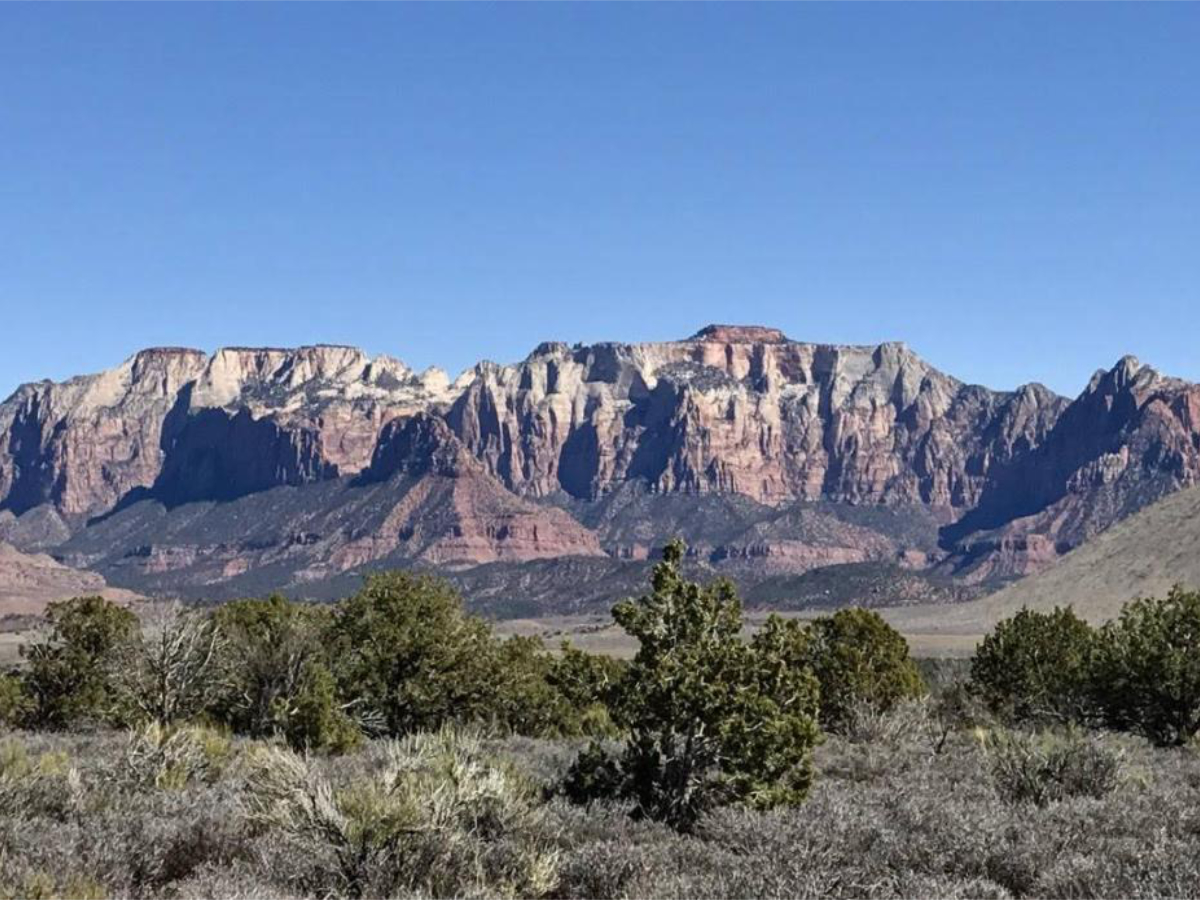 Enjoy the amazing lava clifftop views of Zion’s famous West Temple, Smithsonian Butte, and the Virgin River valley below.